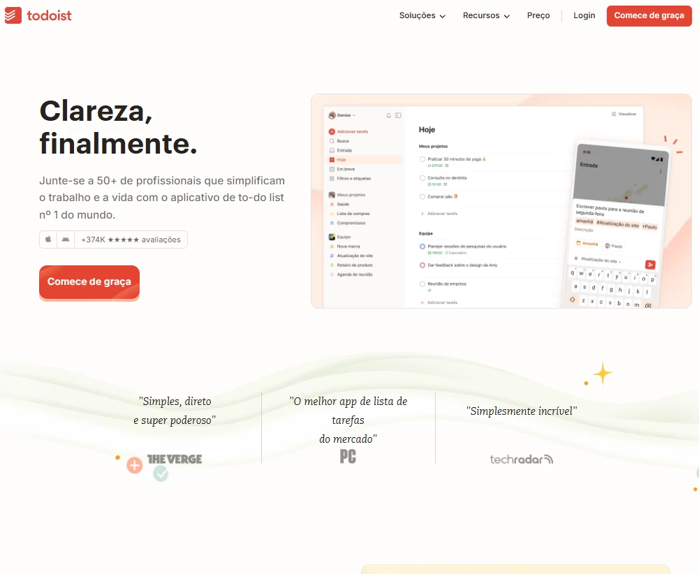 O Todoist é um dos apps de produtividade mais práticos para quem quer organizar a vida pessoal ou profissional. Com uma interface limpa e sincronização em tempo real, ele ajuda você a manter tudo sob controle em qualquer dispositivo.